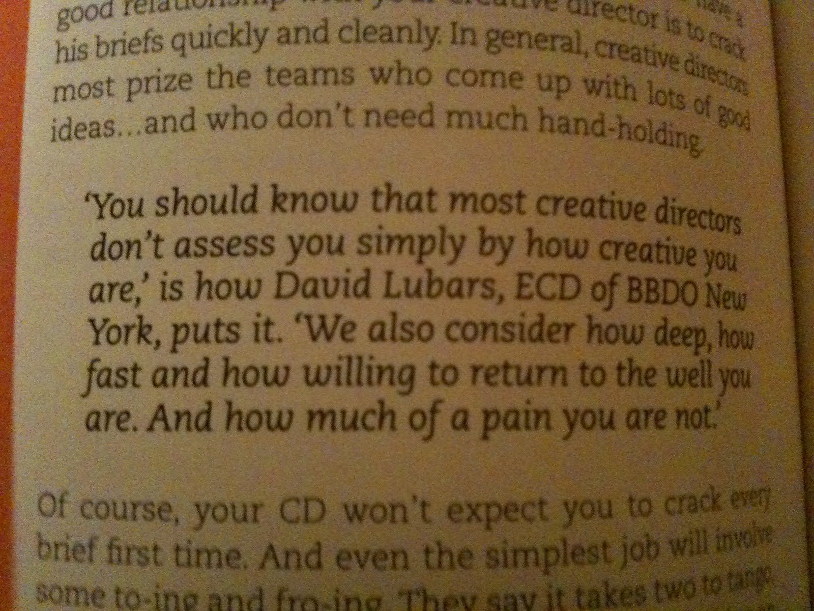 It’s got lots of great insights from someone who has a Cannes Grand Prix, D&AD Pencils and a bunch of other stuff that makes him worth reading: